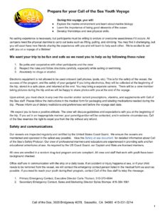 If you act in an inappropriate manner, your parent/guardian will be contacted. Call of the Sea reserves the right to expel you from the trip without any refund of tuition.
